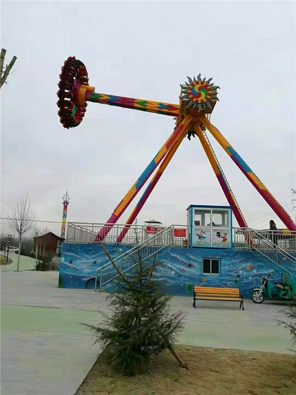 萍鄉23座上驅動擺錘是一種大型的游樂設備,常見于各大游樂園。游客坐在圓形的座艙中,面向外。通常,大擺錘以壓肩作為束縛,配以帶子作為二次保險。座艙旋轉的同時,懸掛座艙的主軸在電機的驅動下做單擺運動。大擺錘的運行可以使置身其上的游客驚心動魄。萍鄉23座上驅動擺錘屬于較為有趣的游樂設備。