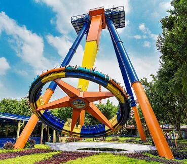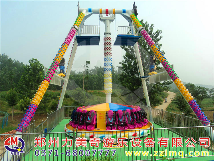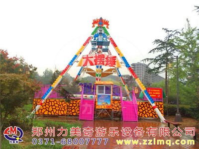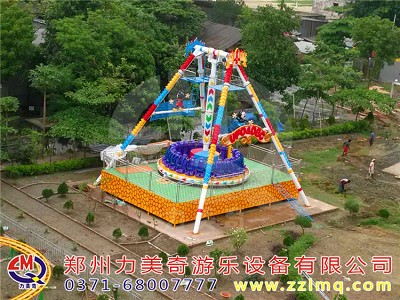 兒童游樂設備“大擺錘”游藝機是一種乘人部分繞水平軸擺動,與此同時繞轉盤中心旋轉的游樂設備,轉盤配有24個座椅,乘客面朝外環座一圈,在體驗離心力的同時還能欣賞遠處的景色,深受游客的歡迎。