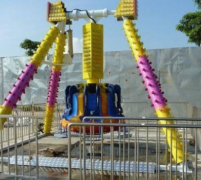 “大擺錘”游藝機(jī)是一種乘人部分繞水平軸擺動(dòng),與此同時(shí)繞轉(zhuǎn)盤中心旋轉(zhuǎn)的游樂設(shè)備,轉(zhuǎn)盤配有24個(gè)座椅,乘客面朝外環(huán)座一圈,在體驗(yàn)離心力的同時(shí)還能欣賞遠(yuǎn)處的景色,深受游客的歡迎。