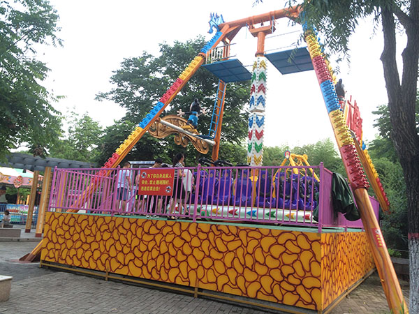 6座小擺錘是大擺錘的縮小版,占地6*7米,6個座位,在氣缸的帶動下,前后搖擺。6個座位在搖擺的過程中自然旋轉(zhuǎn)。給乘坐者帶來刺激的娛樂體驗。迷你小擺錘的售價在大型游樂設(shè)備中,相對較低,占地面積小,可以在城市中的廣場、公園、游樂場等地方都可以安裝使用,由于其運行起來以后磅礴的運行氣勢,可以大量的吸引顧客,因此市場前景廣闊。