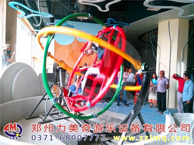 三維太空環是由訓練飛行員和宇航員的模擬裝置演變而來的新型游樂設備。游客在其中360度任意旋轉,速度時快時慢,使你體會到三維空間自由旋轉的特殊感受,放松全身肌肉,既鍛煉身體又趣味無窮,快來感受一下宇航員們的訓練吧?它是一項勇敢者的運動,也是絕無危險的運動,自由的三維旋轉加上絢麗多彩的外型,令人迷戀不己。