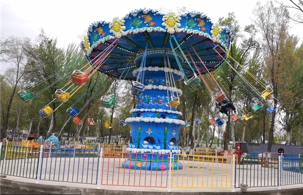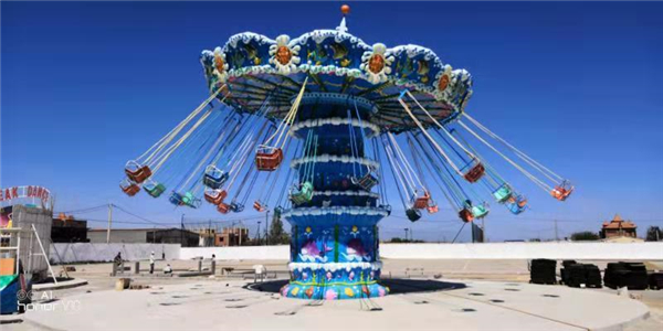颶風飛椅轉動時,乘坐在吊椅上的乘客猶如在藍天飛舞,體驗刺激收獲快樂。颶風飛椅是集旋轉、升降、變傾角等多種運動形式于一體的大型飛行塔類游藝機。當傘形轉盤和中間轉臺反向旋轉啟動時,塔身徐徐上升,此時轉盤搖擺,飛椅呈波浪蕩漾狀,游客猶如在空中飛翔、飄蕩,海闊天空、驚心動魄。設備巍峨雄偉,它柔和了絢麗的燈飾和七彩繽紛的圖案設計,造型華麗,是目前游樂場上漂亮、吸引人的游藝機之一,也是標準的主題公園或現代游樂場的選擇項目之一。