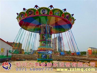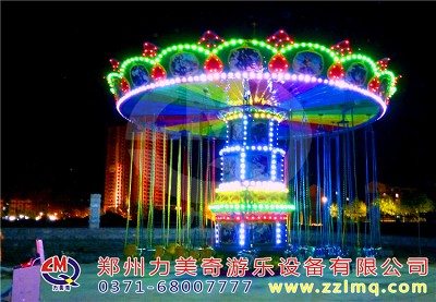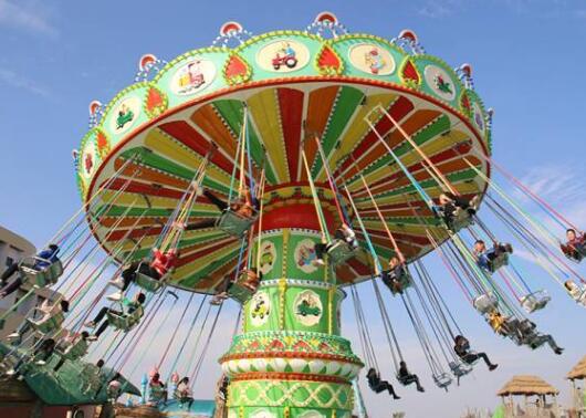 游樂設備旋轉飛椅是一種新穎的飛行塔類游樂設施,豪華的外觀裝飾,有趣的運動形式。游客乘坐在垂掛的吊椅上,隨轉盤的運轉徐徐升起,仿佛翱翔于天際,又如置身于波蕩起伏的大海中,其樂無窮。游客座椅在離心力的作用下繞立柱起伏飛旋,好似銀燕在晴空中回旋飛舞,此起彼伏,上下飄飛。他集娛樂性、趣味性,驚險和刺激性于一體。