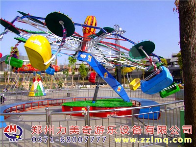雙人飛天造型新穎,氣勢雄偉,壯觀,融驚險性與趣味性為一體。游人在懸掛的座椅中隨著轉盤傾斜回轉轉動,飛上旋下,好不驚險的刺激,親自一試方能體驗它的無窮樂趣。同時,它又鍛煉和培養青少年勇敢頑強的精神的工具,是娛樂和科學的有機結合,適合各種游樂場,公園等娛樂場所使用,深受廣大游客的喜歡和歡迎!