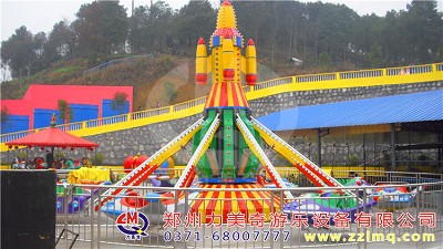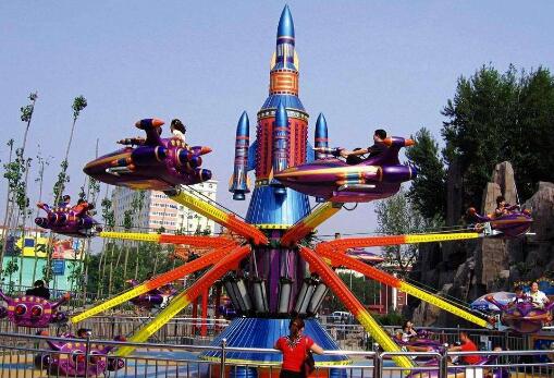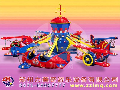 自控飛機是由機械、氣動與油壓和電氣系統組成,是一種繞垂直軸中心旋轉、升降自由的游樂設備。飛機圍繞中心火箭旋轉,并逐漸上升,游客在飛行中緊握操縱桿隨意升降,互相追逐、射擊,形象逼真的空戰聲光效果,令人樂而忘返,該游樂設備不但性能優異,操作簡單,而且新穎的造型、華麗迷人的彩燈裝飾,逼真刺激的空戰音響效果。它具有高空云駕之驚險,自由之悠閑,是一種游客可自己控制升降的現代游樂設施。