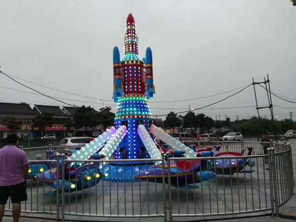 20人自控飛機是目前上流行的新型游樂項目.該設備造型美觀,結構科學,氣勢磅礴.游客乘坐在6臂自控飛機,令人目眩神迷,驚心動魄.游客往往情不自禁的發出驚呼.